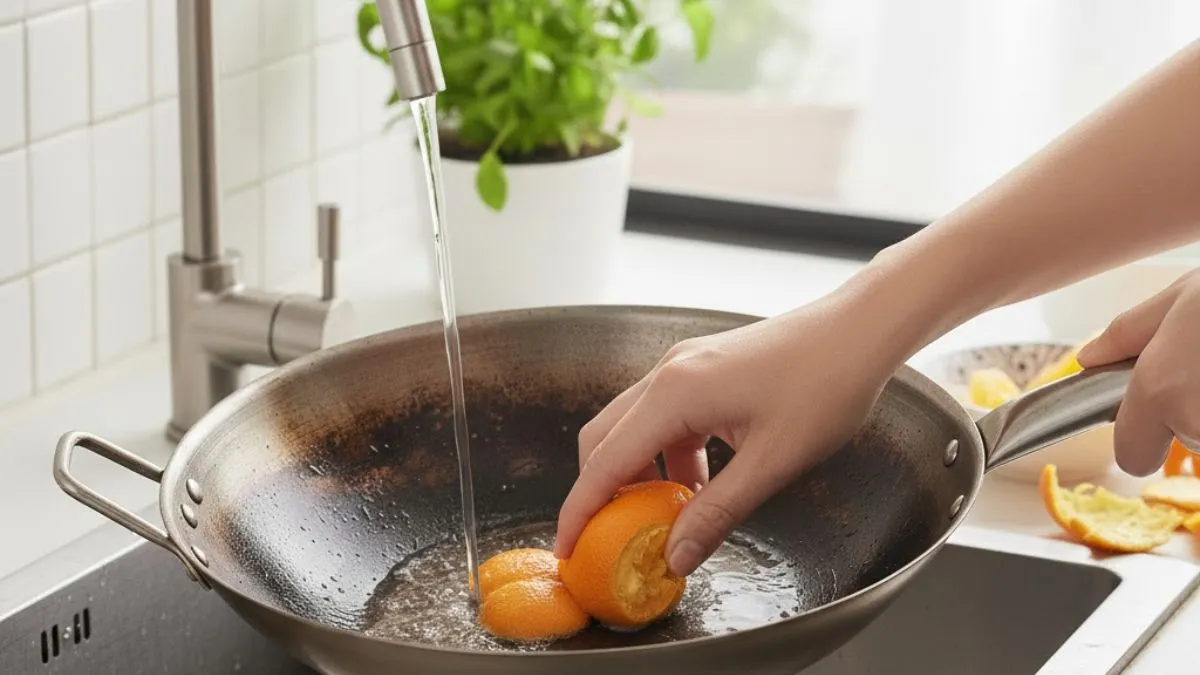 स्क्रबर या फिर साबुन से साफ करने पर भी इसका काला रंग दूर नहीं होता है। ऐसे में आप संतरे के छिलके का इस्तेामाल कर सकती हैं। आमतौर पर आप नींबू का इस्तेमाल करती होंगी, लेकिन संतरे में भी वही गुण माैजूद होते हैं जाे नींबू में होते हैं। ऐसे में संतरे का छिलका जली हुई कड़ाही को साफ करने में मददगार हो सकता है। ये एक कमाल का किचन हैक है। आइए जानते हैं आप इसका इस्तेमाल कैसे कर सकती हैं?